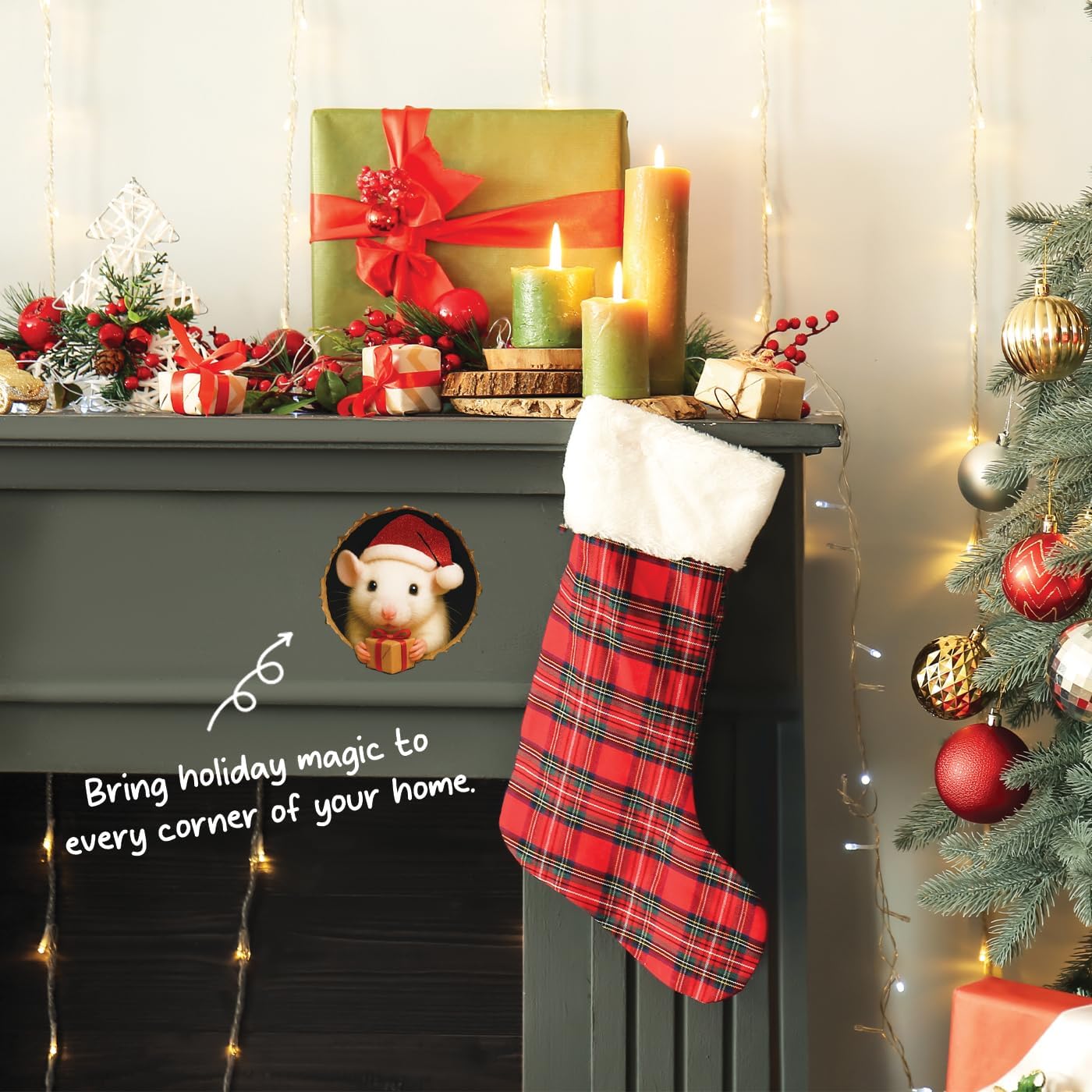 8 reviews for GRITKULTURE Christmas Mouse in Mouse Hole Decal Sticker 5.1inch Assorted 4 Pack. Santa Mouse in The Wall with 3D Effect. Wall Decoration, Funny Gift, Prank (Christmas #1)