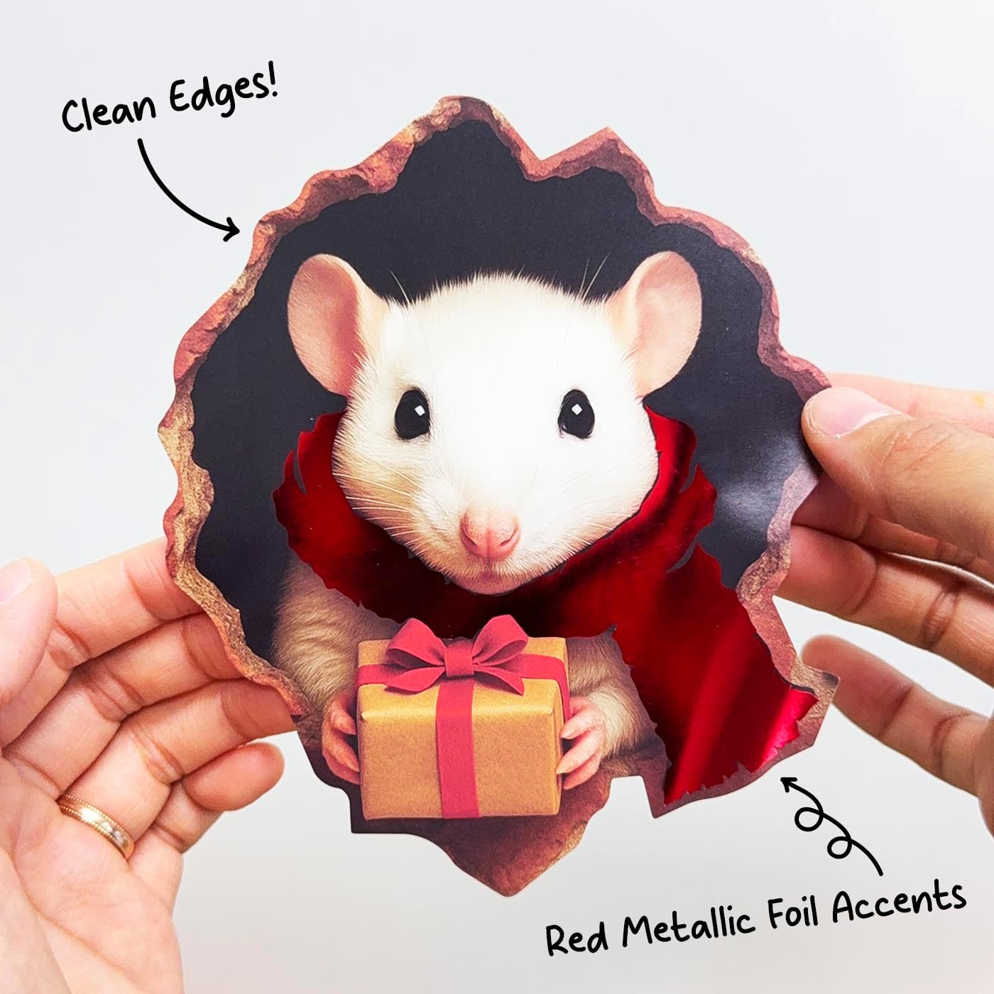 I wish I would have had these in time for Christmas, but I ordered them too late. They are adorable and will be front and center next year for decorating. They are a great size, big enough to notice but small enough to be a realistic size. I plan on sticking one to the baseboard near the tree so he can peek around the corner. I put one on my husband’s water bottle that he takes to work everyday and it stayed where I put it even after washing.The pictures are bright and very detailed. The mice are very realistic as well as the props they are holding. The only one that looks a little “AI” is the mouse with the red scarf (That one a little bright.).