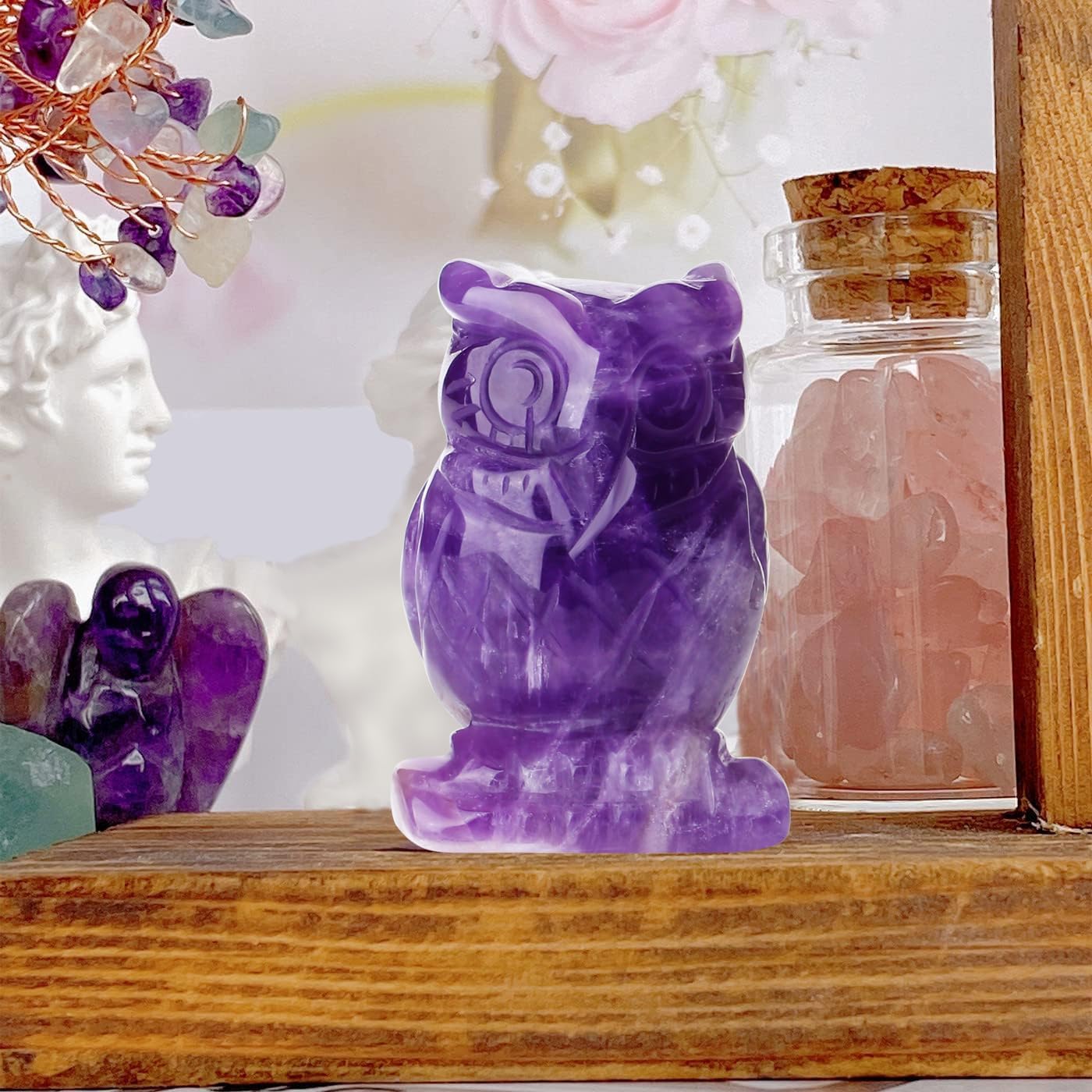 【Basic Information】Specification attributes – 1 Piece Natural Amethyst Crystal Owl Decor. Size (approximately) – 2″. Weight – 60-70 g/pc. Material:Amethyst crystals. This owl gifts for home of art is beautiful and is a cute size.Suitable to send to your family and friends as wishes on any occasion, such as Birthday, Mother’s Day, Father’s Day, Christmas, New Year. It is the best choice for collectors of bird portraits of different styles/themes.